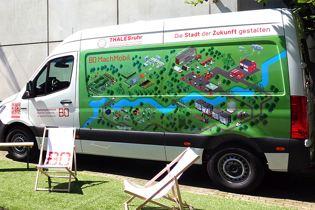 THALESruhr, das Nachhaltigkeitsprojekt der Hochschule Bochum, ist am 31. August und 1. September 2024 mit dem MachMobil beim Welttheater der Straße vertreten. Begleitet wird es von zwei THALESruhr-Transferprojekten, die sich auf ökologische Themen fokussieren. Im Rahmen eines Informations- und Aktionsstands stellen die Projekte „Urbane Ökologie und Gemeinschaftsbildung“ und „Regionaler Klimabund - Klimakompensation & Wertschöpfungsketten mit Pflanzenkohle“ nicht nur ihre Arbeiten vor, sondern verbinden sich zu einem Gemeinschaftsprojekt, das in Kooperation mit dem Kultur- und Weiterbildungsbetrieb der Stadt Schwerte durchgeführt wird.